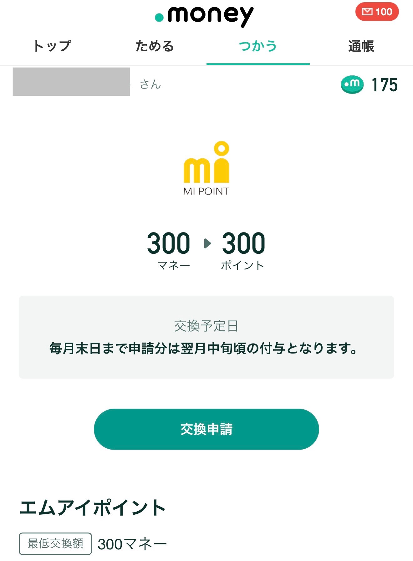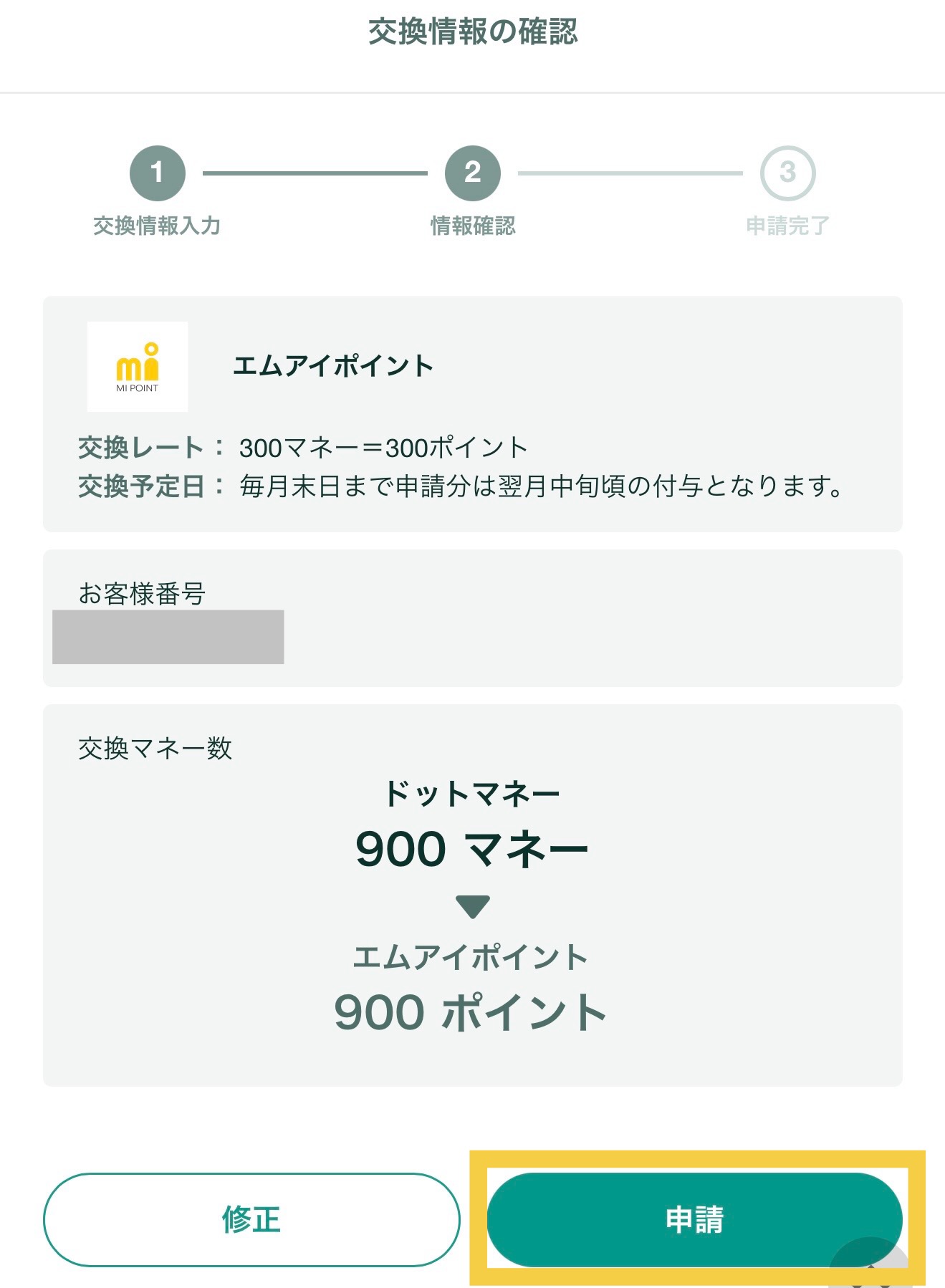 【1】ドットマネー→エムアイポイントへ交換(翌月中旬頃付与)