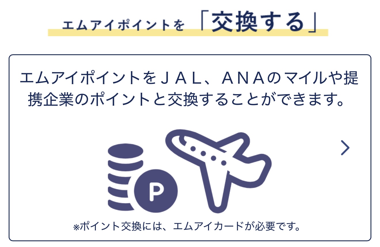 エムアイポイントへの交換手続きを行うにはエムアイカードの発行手続きが必要となります。エムアイカードの新規発行はこちら