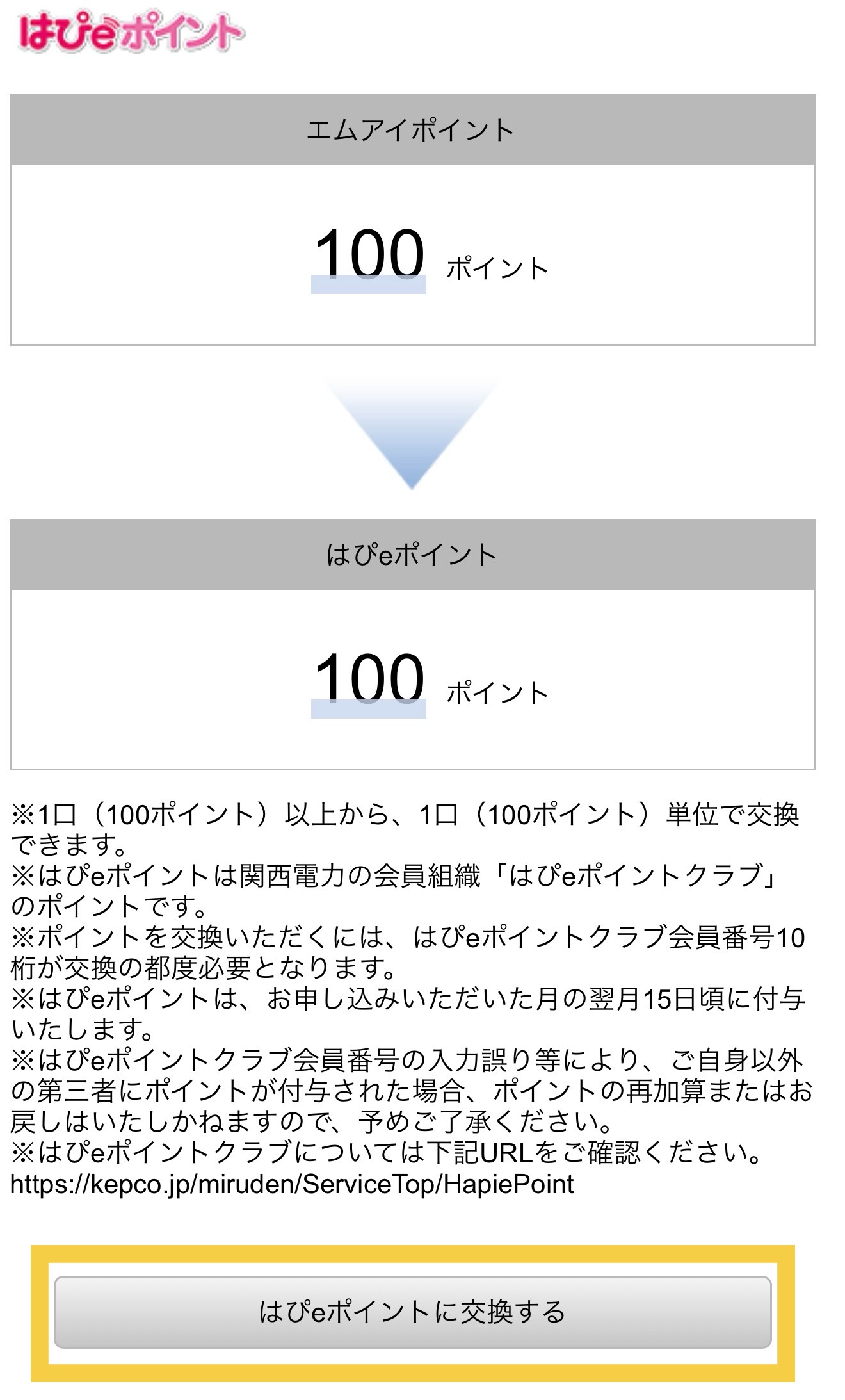 エムアイポイント→はぴeポイントへの交換はこちら