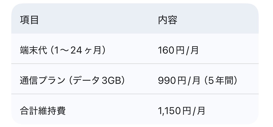 • 2年後の返却が必要: 月160円で使うには、25ヶ月目に端末を返却する必要があります。