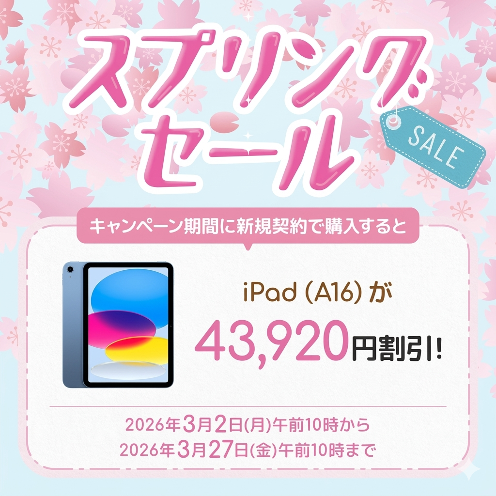 ソフトバンクのオンライン限定「スプリングセール割」に2025年3月発売の最新iPad A16が登場