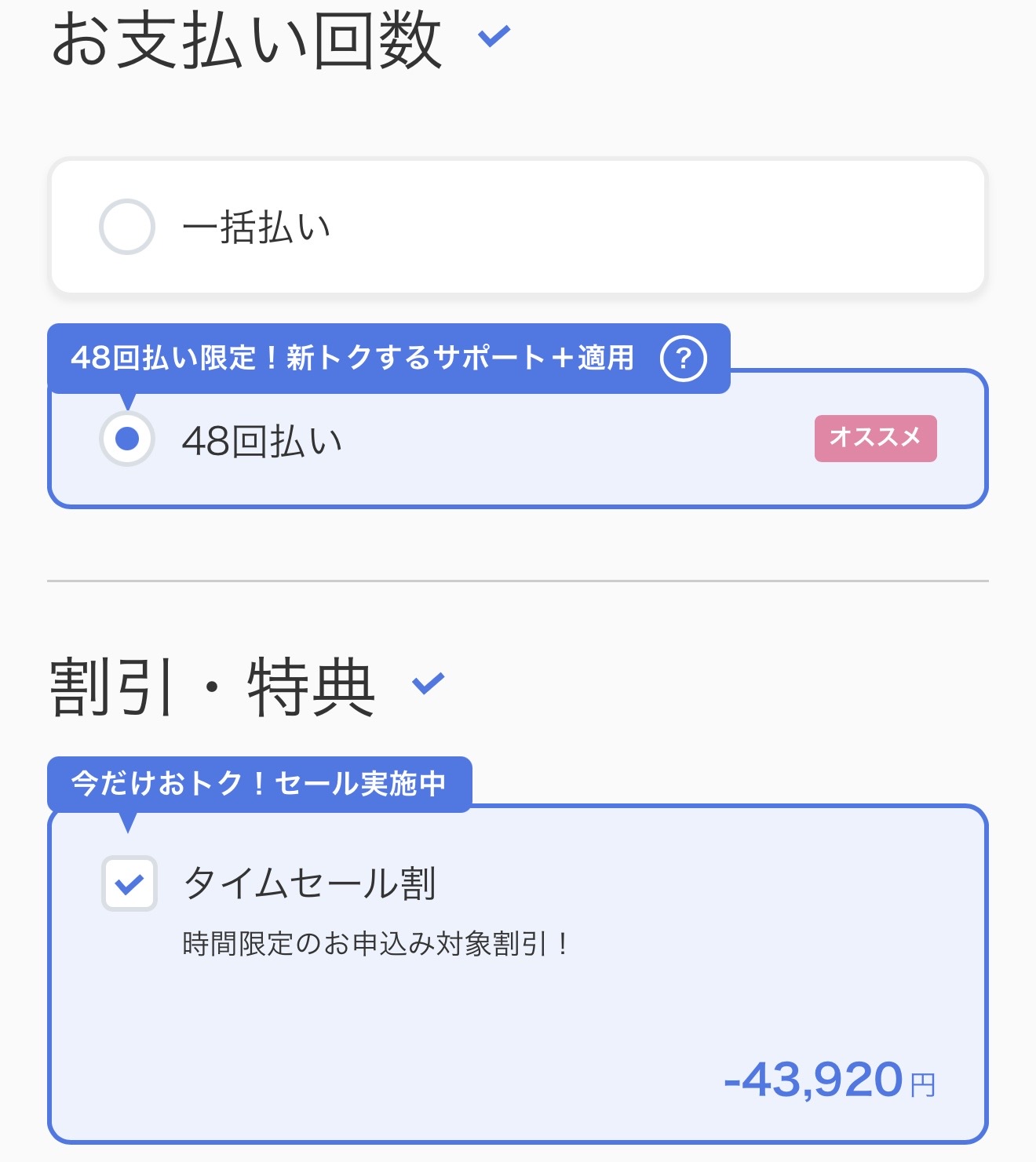 4. 新トクするサポート+に加入: 48回払いを選択して申し込みを完了させます。