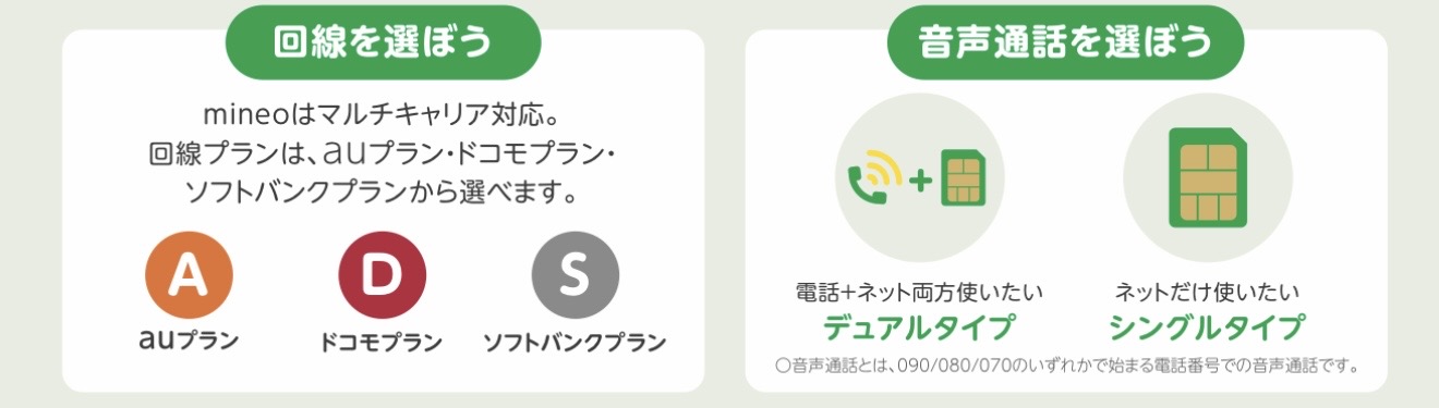 マイネオは3回線から選べるマルチキャリア対応