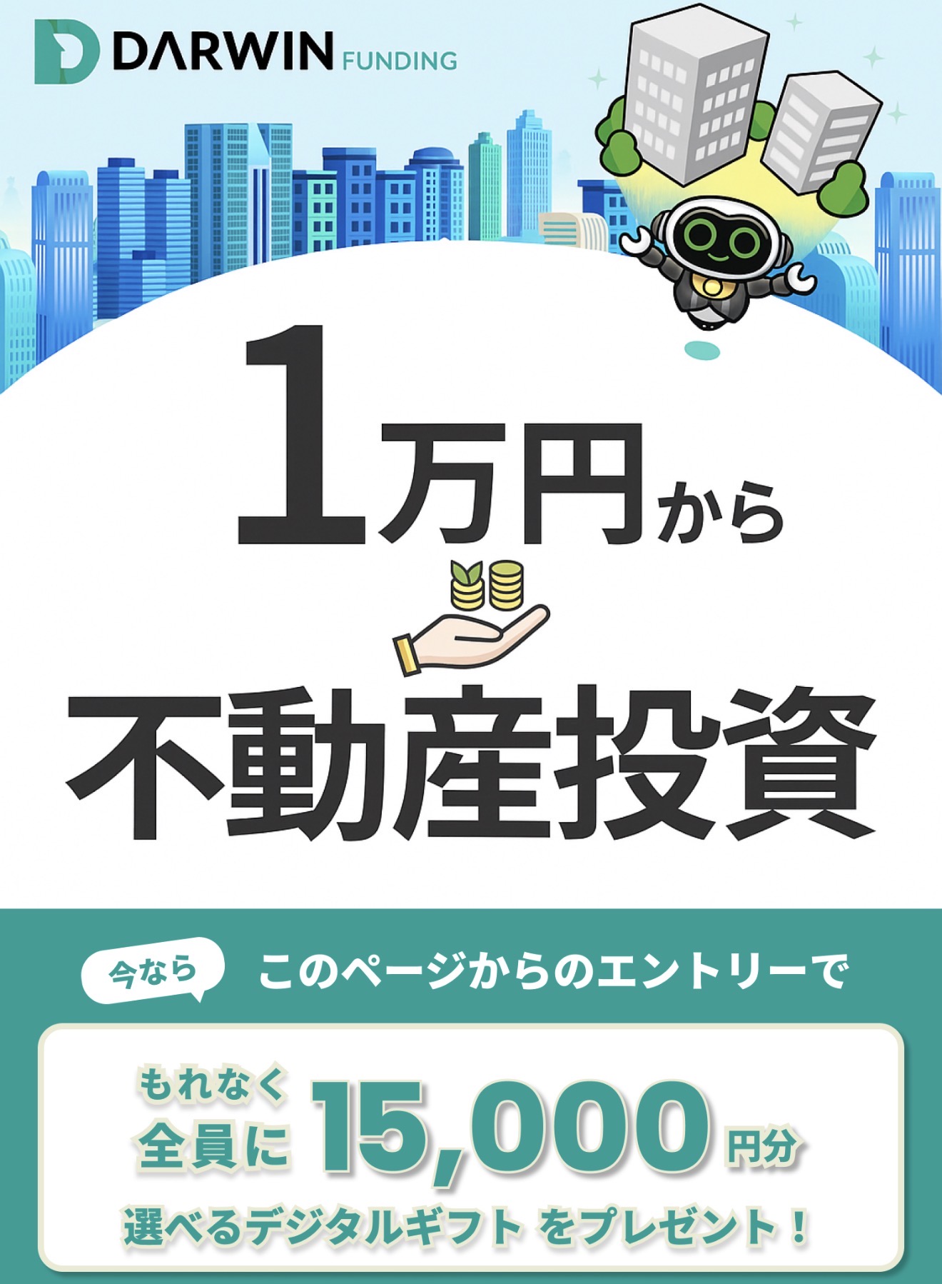 【26/2/20終了】DARWIN Funding 開発型37号、38号に2万円投資すれば15000円もらえるキャンペーン。