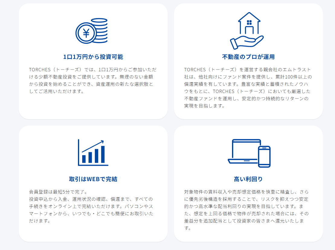 投資対象不動産の売却時に損失が発生した場合、劣後出資者であるトーチーズの出資分から先に損失を引き受けてくれます。優先出資者の元本毀損リスクの低減を図る仕組みです。