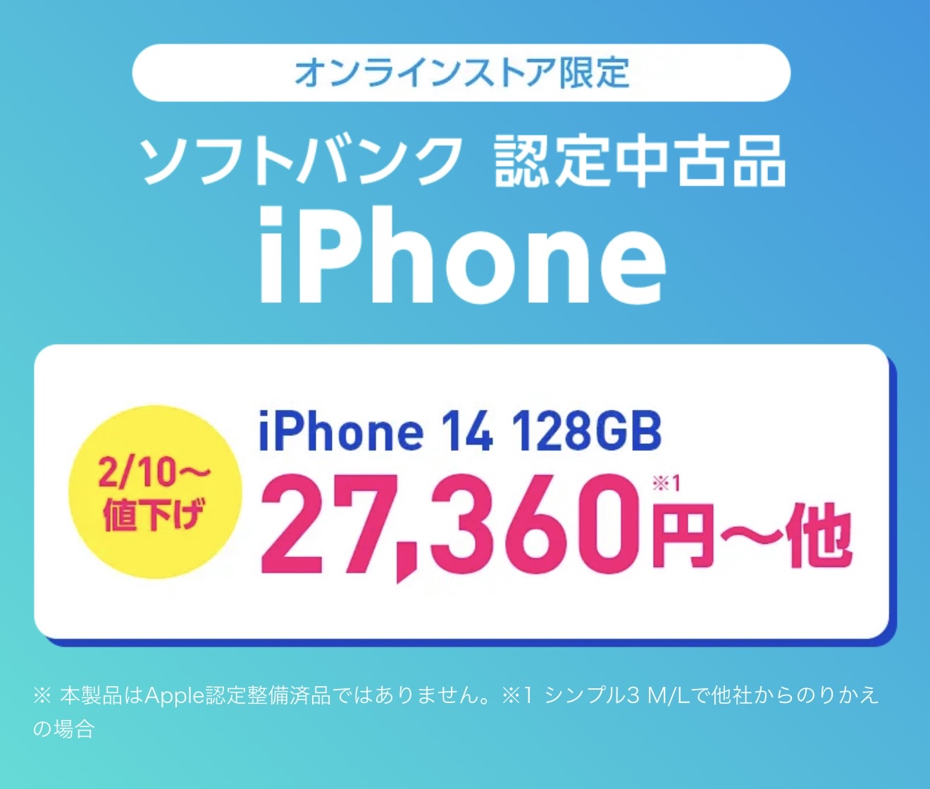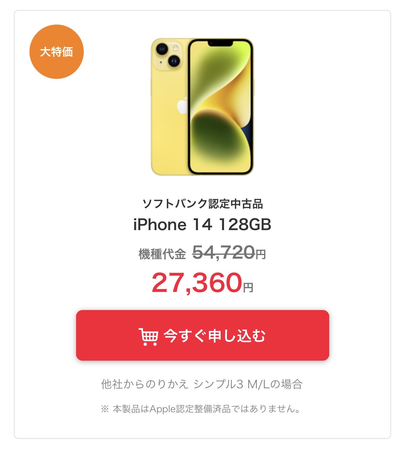 【大特価】他社からの乗り換えでiPhone14が27,360円