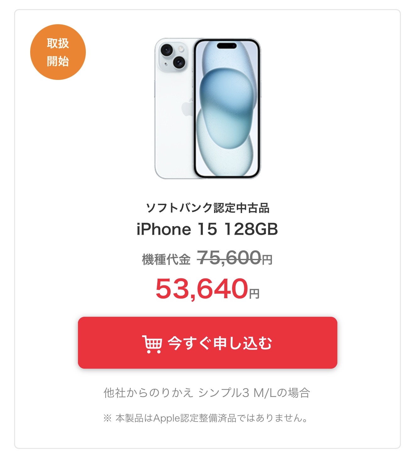 【取扱開始】他社からの乗り換えでiPhone15 認定中古品が53,640円
