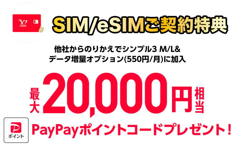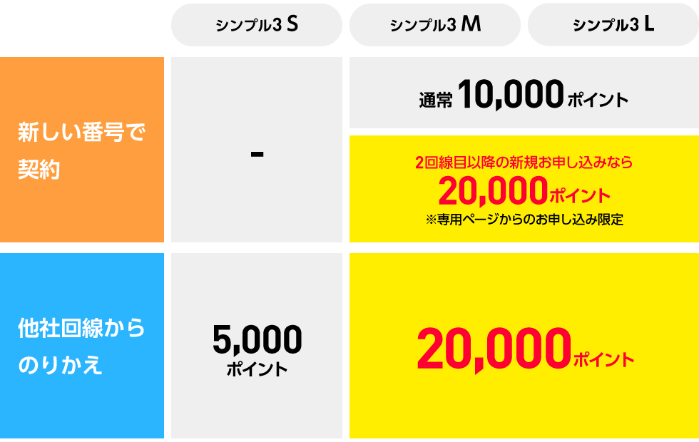 SIMまたはeSIMのみ他社から乗り換えで20,000ポイント