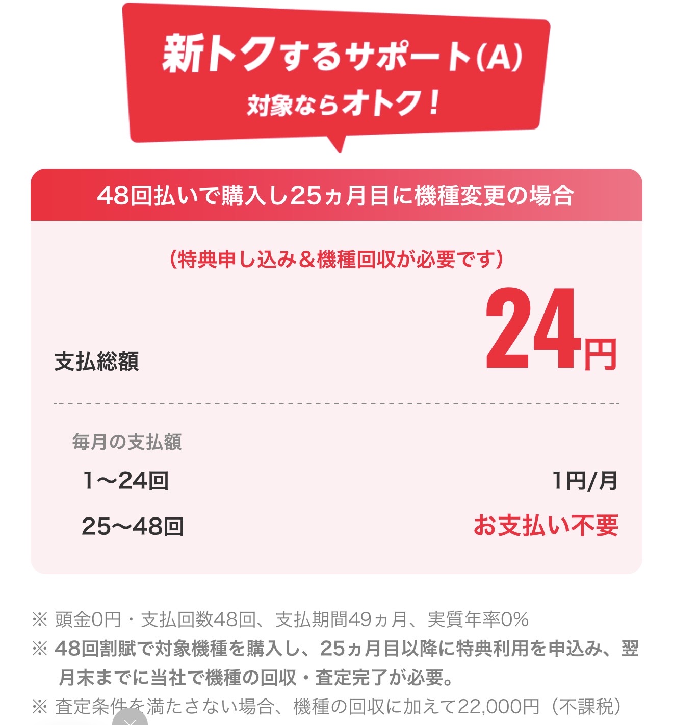 43,200円相当の機種が24円で2年間使えます